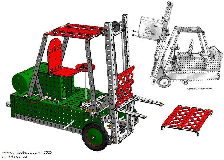 N.B. this model requires necessarly Bral n. 52 flanged plates that haven't flanges on short sides and the Bral N. 59h crank handl that is longer than the meccano piece that have the same number.