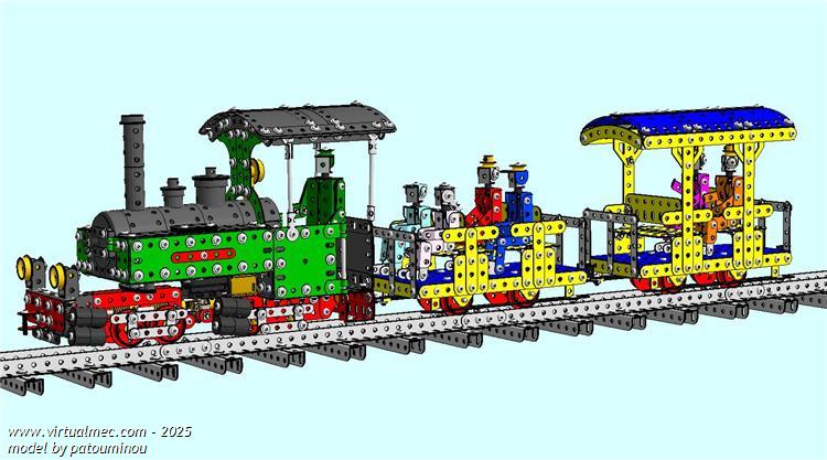 This 19th century locomotive has carried the visitors of the 1889 Paris World's Fair. A man called n.biet on the Meccano French Forum has built it (thanks to him) but he uses cutting pliers and table tennis ball which don't exist in VM !