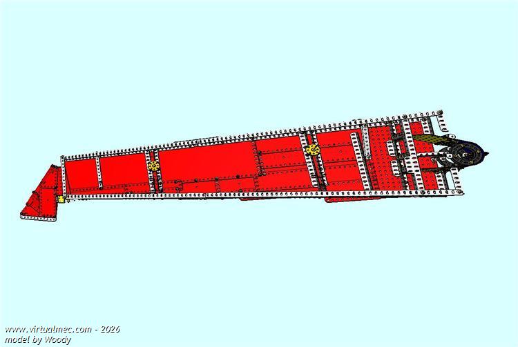 this is the next stage of the wing assembly build, with the main box section made up of front and rear spars,spaced with girders and panelled in below. I've omitted the upper panel at the root end, for better visibility, although this is an important structural support panel.