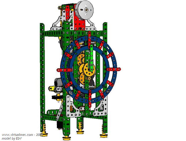 From an article on the issue #70 of June 09 of the RMGM. It is driven by the weight of the motor and battery assembly which rewinds it periodically. Only chain and batteries are not illustrated.