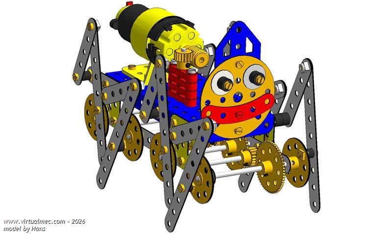 Simple walking machine. There's a video on Youtube of the built model (https://youtu.be/vht21PSVfzg).