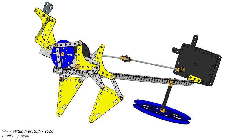 An entry to Christmas 2010 Spanners Contest. The rules limited the model to 30 parts, no counting bolts, nuts and washers. Based in Theo Jansen's linkage.